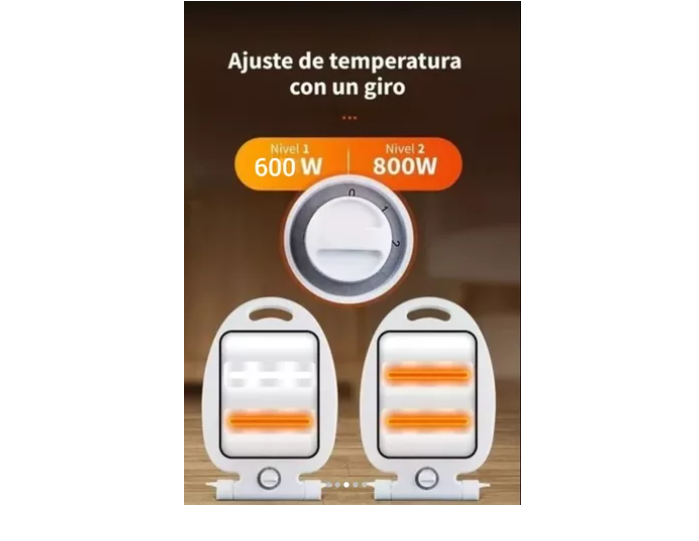 Estufa Calefactor De CUarzo Portátil Doble tubos 400W/800W Estufa Eléctrica De Cuarzo Con 2 Niveles De Potencia Bajo Consumo Sistema Seguridad Interruptor Antivuelco.