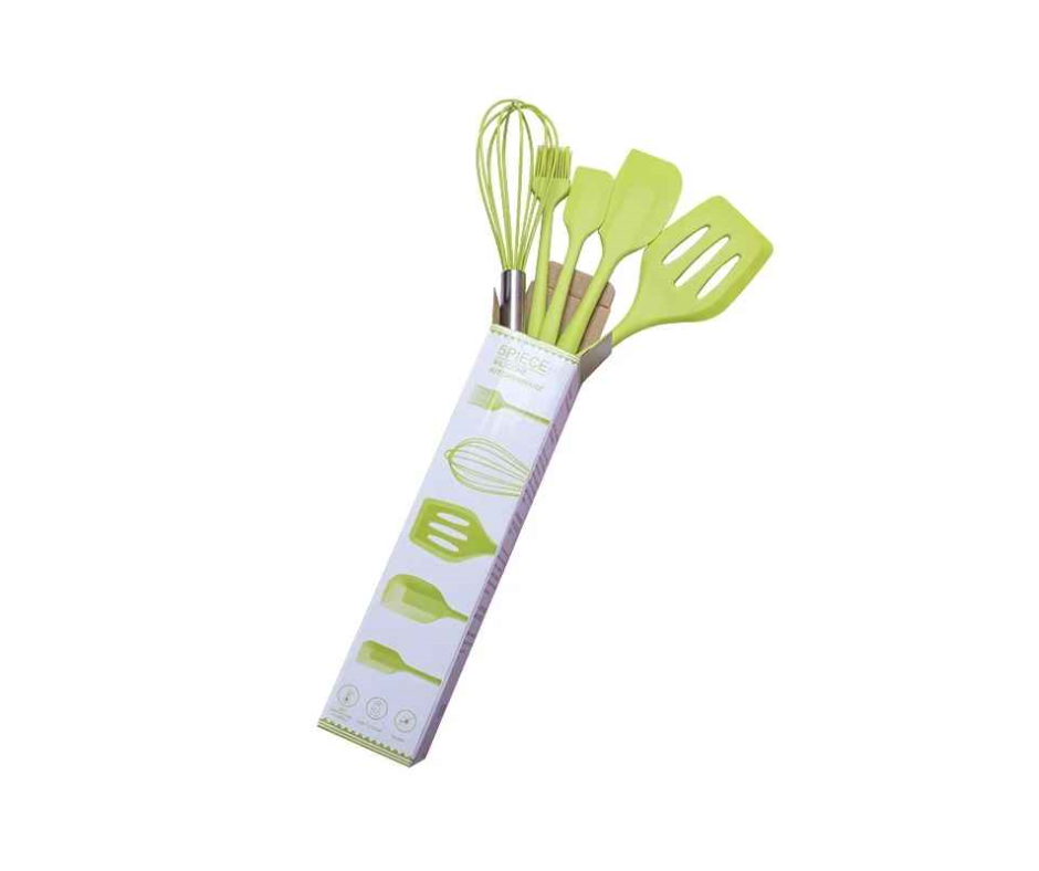 Prepara tus comidas con mayor comodidad y seguridad con este set de 5 utensilios de cocina, diseñados con cabezales de silicona resistente al calor y mangos de acero inoxidable duradero. Perfectos para cocinar sin rayar tus sartenes y ollas.