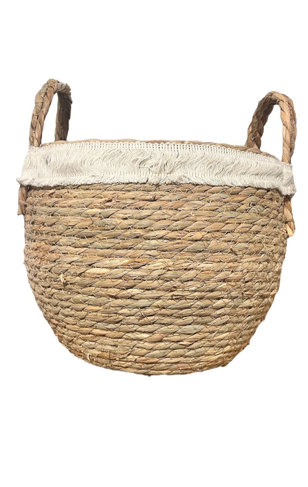 Se trata de un cesto fabricado en mimbre en color claro de estilo natural y con diseño trenzado.