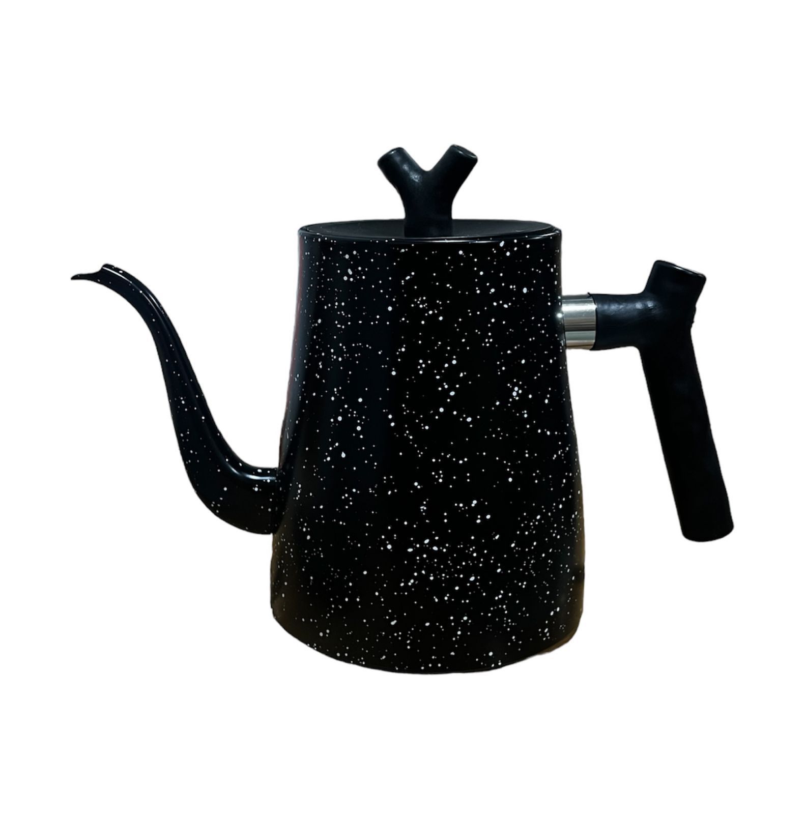 TETERA DE 1,5 LITROS Eleva tu experiencia en café con nuestra tetera de alta calidad, diseñada para los amantes del café pour-over que buscan precisión y estilo en cada vertido. Fabricada con elegancia en acero inoxidable, esta tetera no solo añade un toque de sofisticación a tu espacio de café, sino que también es compatible con cocinas de inducción y puede ser utilizada a fuego directo, brindándote versatilidad en cada preparación.